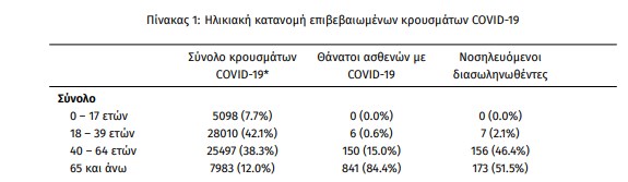 Ο κορονοϊός, όμως, έχει χτυπήσει αλύπητα και την επόμενη ηλικιακή κατηγορία. Αυτή των 50-64 που πλέον έχουν ανέλθει στους 156, ενώ οι 65 και άνω είναι 173.