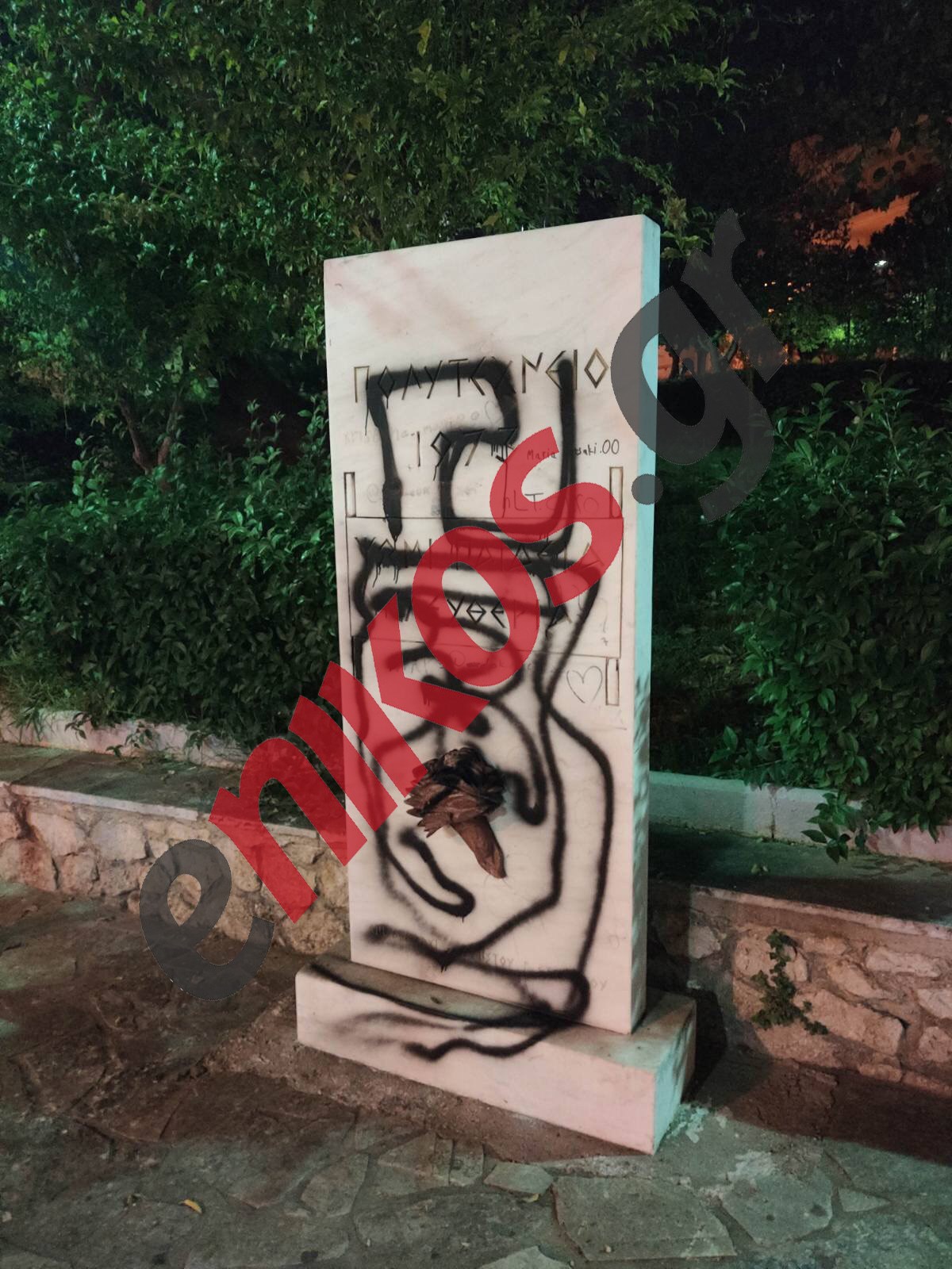 Μία εβδομάδα από την 47η επέτειο της εξέγερσης του Πολυτεχνείου, άγνωστοι βεβήλωσαν το μνημείο του Πολυτεχνείου στην Πλατεία Κανάρια στον Κορυδαλλό.