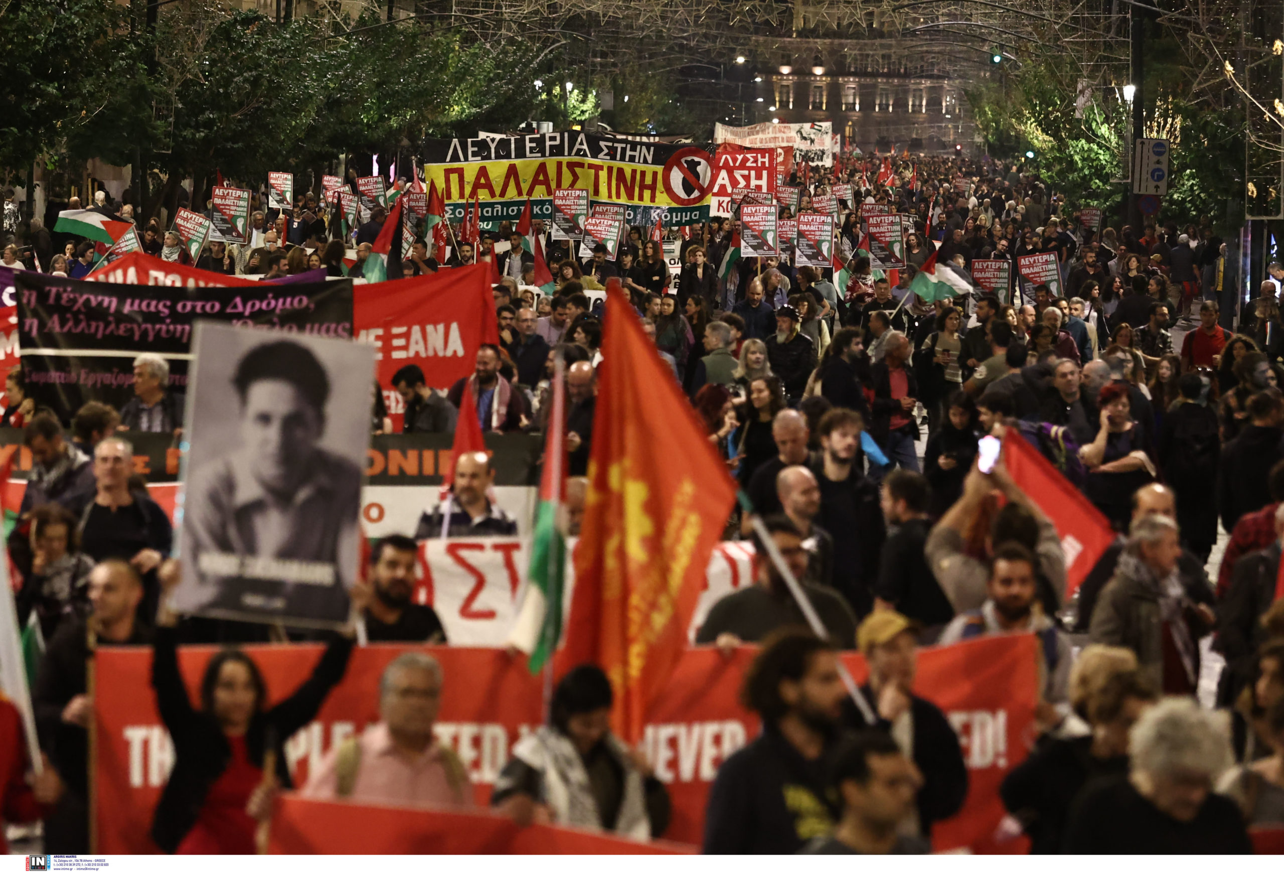 Όταν έκλεισαν οι πύλες του Πολυτεχνείου, φοιτητικοί σύλλογοι κρατώντας μια μεγάλη παλαιστινιακή σημαία πραγματοποίησαν προσυγκέντρωση και με πορεία κατευθύνθηκαν στην πλατεία Κλαυθμώνος, καθώς περίμεναν να ξεκινήσει ο κύριος όγκος της διαδήλωσης.