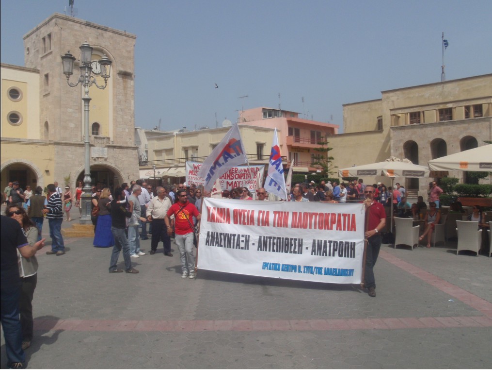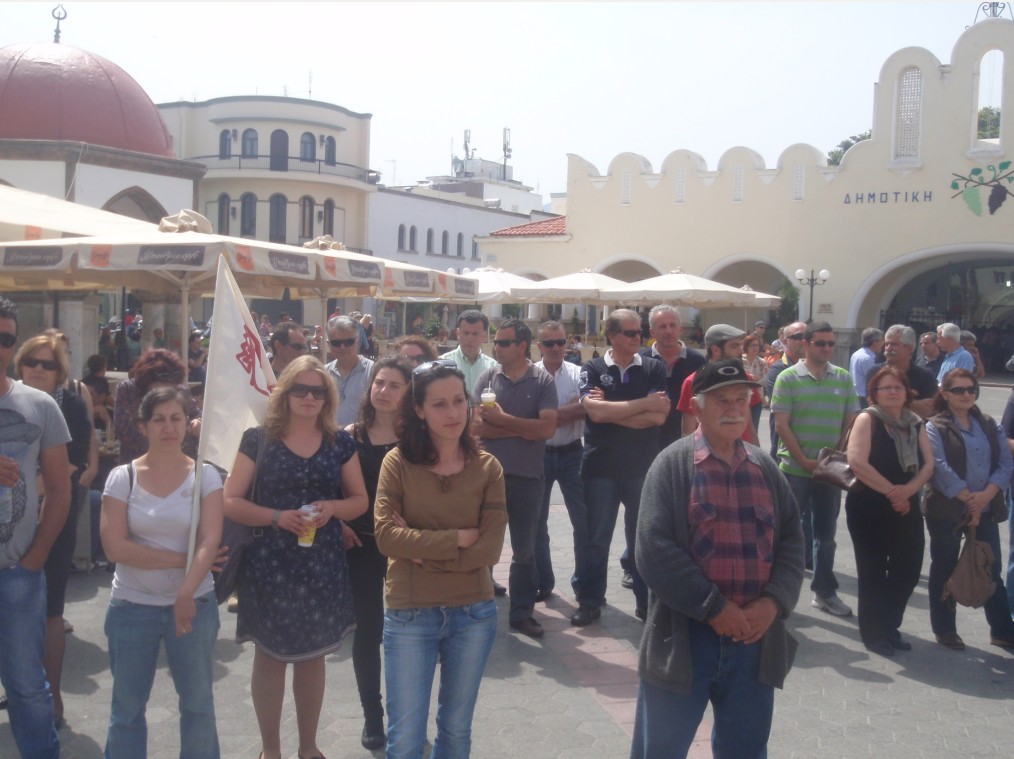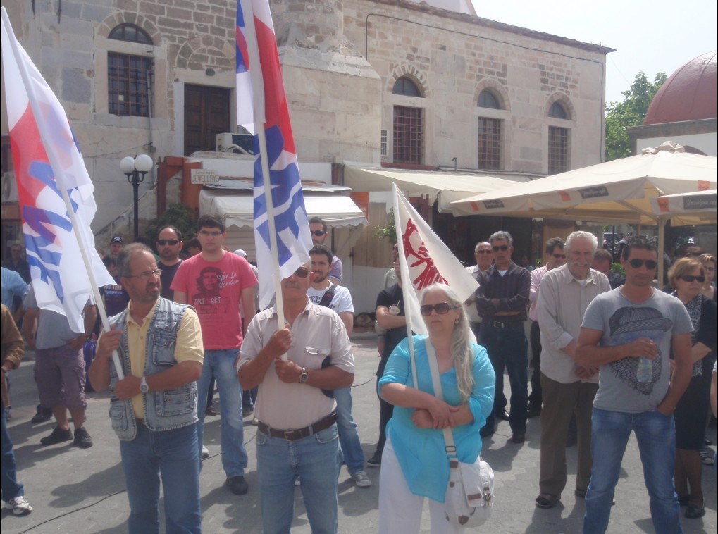 Με τη συμμετοχή εκπροσώπων του εργατικού κέντρου και των πρωτοβάθμιων Σωματείων, του Συλλόγου εργαζομένων του Δήμου, της ΠΑΣΕΒΕ, της Ένωσης Γυναικών Κω, του ΚΚΕ και της ΚΝΕ, του ΣΥΡΙΖΑ, της ΔΗΜΑΡ, του ΠΑΜΕ και της Δημ. Αρχής (Νικηταράς, Πης, Ρουφα, Νασταχανίδης) πραγματοποιήθηκε το πρωί η Πρωτομαγιάτικη συγκέντρωση στην πλ. Ελευθερίας, στην Κω.Κεντρική ομιλήτρια ήταν η πρόεδρος του Εργατικού Κέντρου, Κική Μακρή, η οποία στο ξεκίνημα έριξε μπηχτές και στους εκπροσώπους της δημοτικής αρχής που δεν φρόντισαν να τοποθετήσουν βάθρο για να διευκολύνουν τη συγκέντρωση…