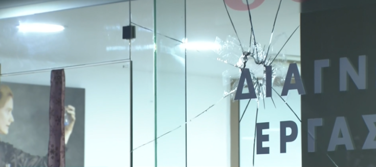 Οι δράστες διέφυγαν πριν φτάσουν οι αστυνομικές δυνάμεις, αφήνοντας πίσω τους σπασμένες τζαμαρίες και τρικάκια με συνθήματα για τις εκκενώσεις καταλήψεων.