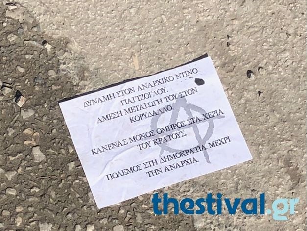 Μία ομάδα κουκουλοφόρων έβαλε φωτιά σε τρεις κάδους μπροστά από το ΑΠΘ και πέταξε “τρικάκια” που έγραφαν “Δύναμη στον αναρχικό Ντίνο Γιαγτζόγλου”.