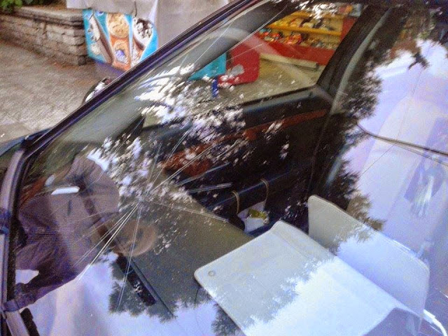 Ο οδηγός αντέδρασε ακαριαία και κατάφερε να ξεφύγει, ωστόσο ήταν ήδη αργά για το όχημά του το οποίο υπέστη σοβαρές υλικές ζημιές τόσο στο παρμπρίζ, το οποίο έσπασε, όσο και στις λαμαρίνες.