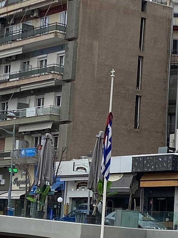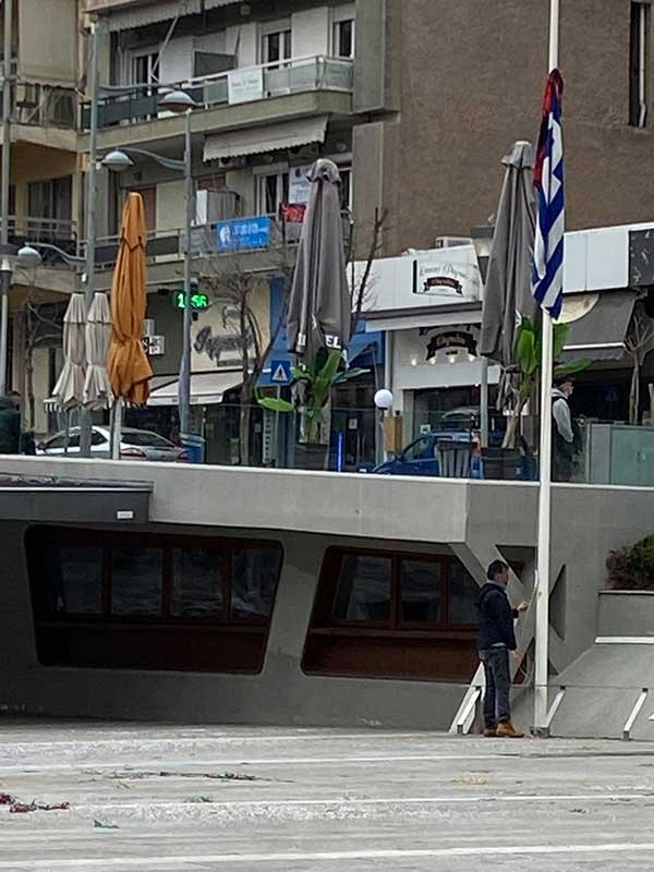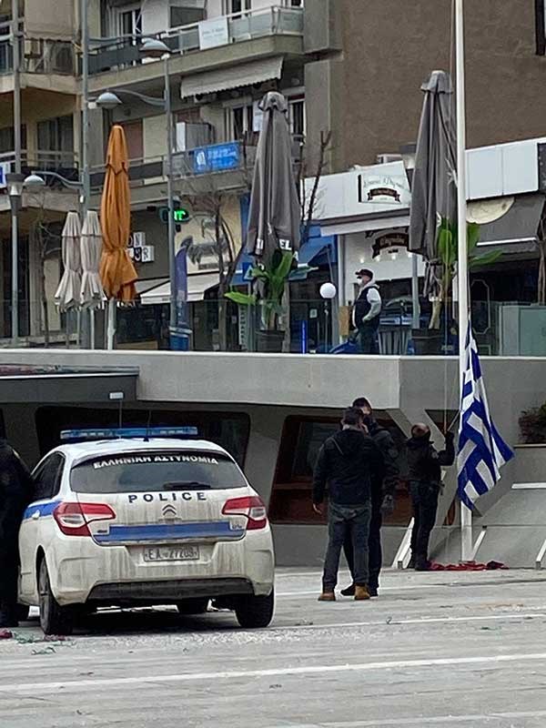Ένας άντρας προέβη σε υποστολή της ελληνικής σημαίας και εκ νέου έπαρση αυτής βάζοντας ένα κόκκινο κασκόλ-ύφασμα πάνω από αυτήν .
