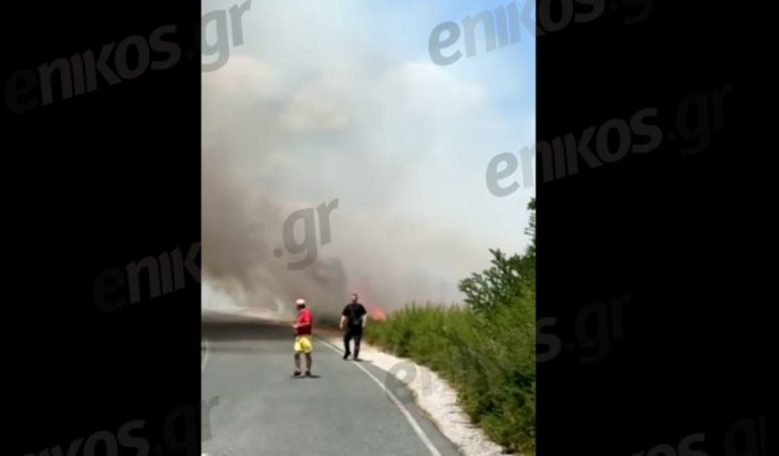 Όπως αναφέρει ο αναγνώστης του enikos.gr και φαίνεται στα πλάνα οι φλόγες είναι δίπλα στα σπίτια.