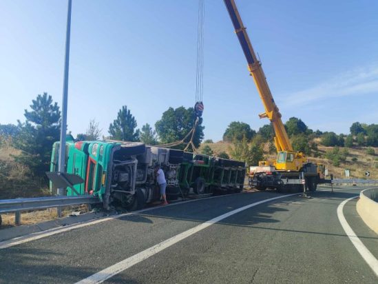 Στο σημείο από χθες υπάρχουν γερανοφόρα οχήματα προκειμένου να απομακρύνουν την νταλίκα από το οδόστρωμα και να αποκατασταθεί η κυκλοφορία.
