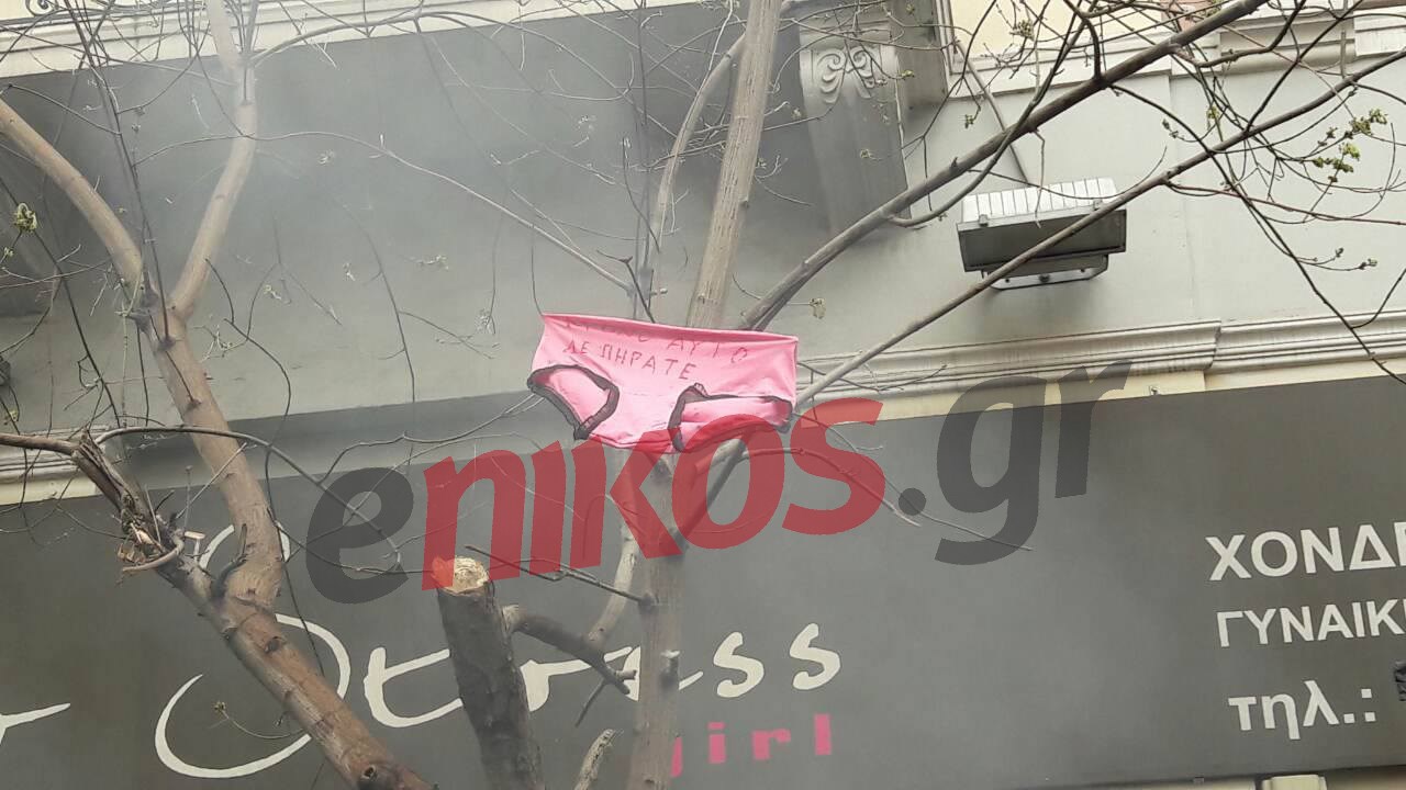 Αγανακτισμένοι αγρότες προχώρησαν σε μία συμβολική κίνηση έξω από τα γραφεία του ΣΥΡΙΖΑ στην Κουμουνδούρου.Πιο συγκεκριμένα, σε δέντρο που βρίσκεται έξω από τα γραφεία, έβαλαν ένα ροζ γυναικείο εσώρουχο, το οποίο γράφει: «Μόνο αυτό δεν πήρατε», διαμαρτυρόμενοι για την οικονομική κατάσταση που έχει διαμορφωθεί στη χώρα αλλά και στον κλάδο τους.Δείτε φωτογραφίες: