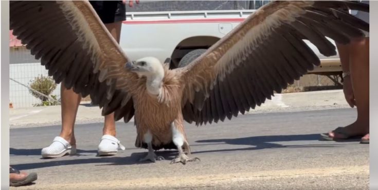 Ένας εξαντλημένος γύπας εντοπίστηκε στην οροφή ενός θερμοκηπίου στην περιοχή Κόκκινος Πύργος Τυμπακίου, στην Κρήτη και οι κάτοικοι κινητοποιήθηκαν για να τον σώσουν.