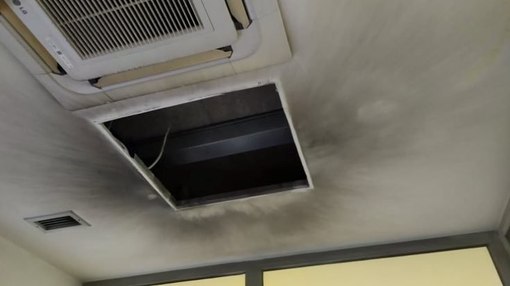 Ασυναίσθητα γυρίζω προς τα πάνω και βλέπω το φωτιστικό της οροφής του γραφείου να έχει τυλιχθεί στις φλόγες ενώ άρχισαν να λιώνουν τα πλαστικά καλύμματα τα οποία έπεφταν στο γραφείο που ήταν γεμάτο με χαρτιά. Αμέσως ενημέρωσα το υπόλοιπο προσωπικό το οποίο έβγαλε τα παιδιά έξω με ασφάλεια ενώ ένας συνάδελφος ειδοποίησε την πυροσβεστική. Την ίδια ώρα, πήρα τον πυροσβεστήρα και έσβησα τη φωτιά. Οι καπνοί γέμισαν το γραφείο και δεν μπορούσαμε να δούμε ούτε στα 30 εκατοστά».