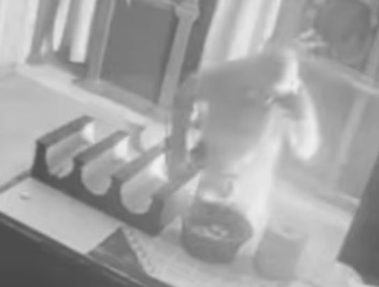 Λίγα δευτερόλεπτα αργότερα, αντιλαμβάνεται την ύπαρξη της κάμερας, η οποία δεν γλίτωσε από την μανία του. Σημειώνεται ότι πριν τραπεί σε φυγή, προκάλεσε φθορές στον ναό, όπως φαίνεται και στην παρακάτω φωτογραφία.