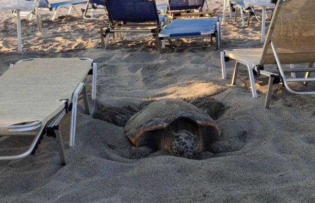 Μια συγκινητική στιγμή σημειώθηκε όταν μια θαλάσσια χελώνα καρέτα-καρέτα βγήκε στην παραλία του Πλατανιά στην Κρήτη, για να εναποθέσει τα αυγά της.