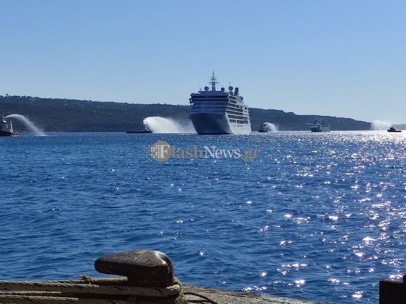 Εντυπωσιακός ήταν ο τρόπος με τον οποίο υποδέχτηκαν τα δύο κρουαζιερόπλοια στα Χανιά ήταν εντυπωσιακός. Ρυμουλκά είχαν δημιουργήσει αψίδες νερού την ώρα που τα δύο κρουαζιερόπλοια κατέπλεαν στο λιμάνι της Σούδας.