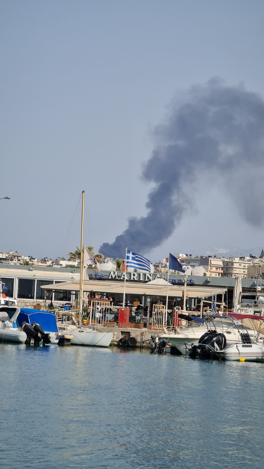Οι μαύροι καπνοί, έγιναν ορατοί από κάθε πλευρά της πόλης του Ηρακλείου, όπως και από το λιμάνι. Την ίδια ώρα, 12 περιπολικά της αστυνομίας απέκλεισαν περιμετρικά την περιοχή γύρω από το επίκεντρο της πυρκαγιάς, ώστε να μην την προσεγγίζουν άλλα οχήματα.