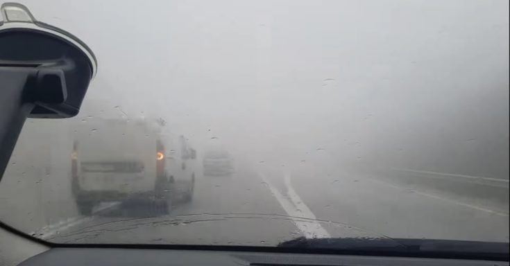 Σε βίντεο που δημοσίευσε οδηγός κατά την έξοδο του από το τούνελ εξαιτίας των έντονων καιρικών φαινομένων με δυσκολία διακρίνει τον δρόμο ο οποίος φαίνεται να έχει «χαθεί» από την πυκνή ομίχλη.