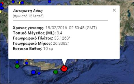 Σεισμική δόνηση 4,4 βαθμών της κλίμακας Ρίχτερ σημειώθηκε στις 4.40 τα ξημερώματα της Πέμπτης στον υποθαλάσσιο χώρο νοτιοανατολικά της Κρήτης.