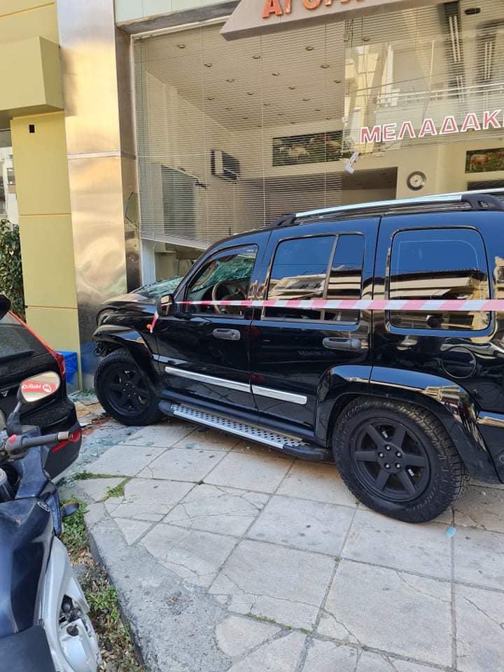 Τόσο ο ιδιοκτήτης του κρεοπωλείου όσο και οι περαστικοί δε μπορούσαν να πιστέψουν στα μάτια τους το τι συνέβη, ενώ ο οδηγός του τζιπ βγήκε σώος από το όχημα.
