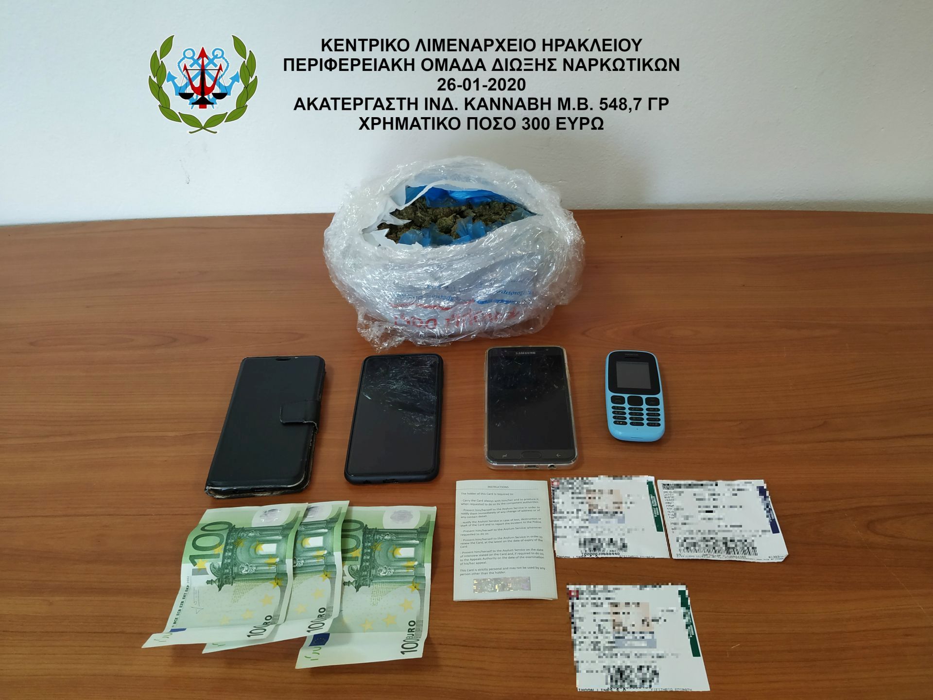 Συγκεκριμένα, σε έλεγχο που διενεργήθηκε στον 29χρονο και τον 21χρονο στον λιμένα Ηρακλείου κατά την αποβίβασή τους από το πλοίο της γραμμής, ο 29χρονος βρέθηκε να έχει στο σακίδιο του μία νάιλον συσκευασία, με ακατέργαστη ινδική κάνναβη μικτού βάρους πεντακοσίων σαράντα οκτώ γραμμαρίων, ενώ ο 21χρονος κατείχε και επέδειξε ταξιδιωτικό έγγραφο που ανήκει σε άλλο πρόσωπο.