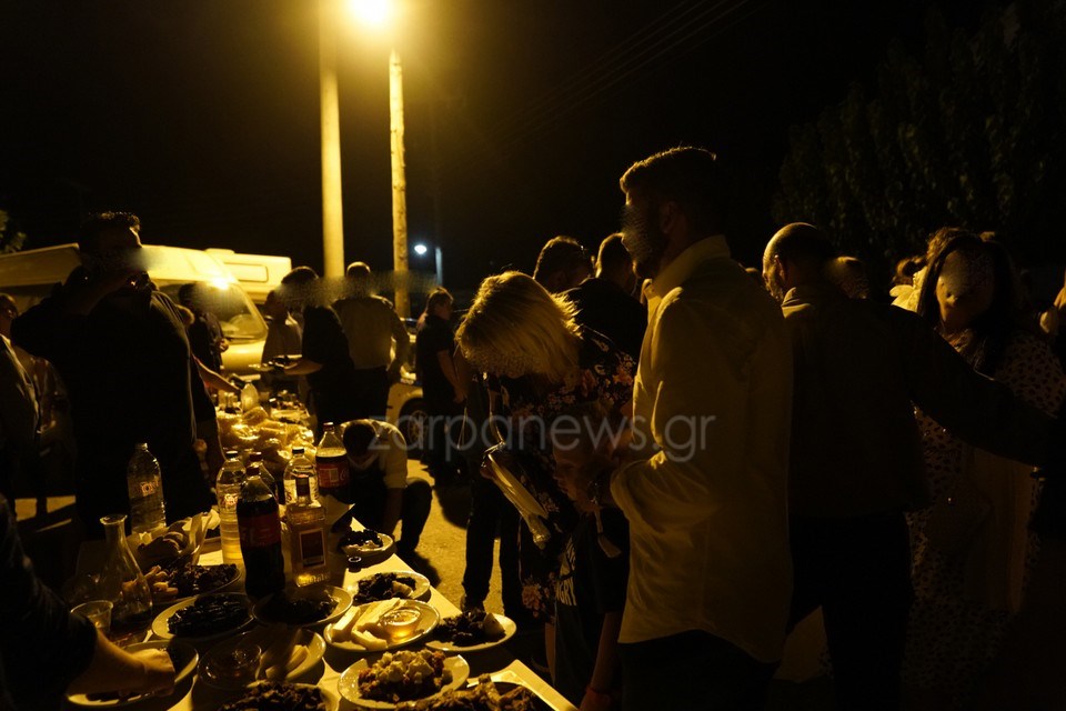 Παρά την αναστάτωση, το γλέντι έγινε κανονικά, με τους καλεσμένους να μοιράζονται σε δύο διαφορετικούς ανοικτούς χώρους, με 50 άτομα όριο στα τραπεζοκαθίσματα που είχαν στρωθεί. Μάλιστα η νύφη χόρεψε στη μέση του δρόμου με τους φίλους και συγγενείς. Το τέλος της βραδιάς ήρθε νωρίς αλλά οι καλεσμένοι που έφευγαν φορτώνονταν με… ταπεράκια και φιάλες ουίσκι για το σπίτι.