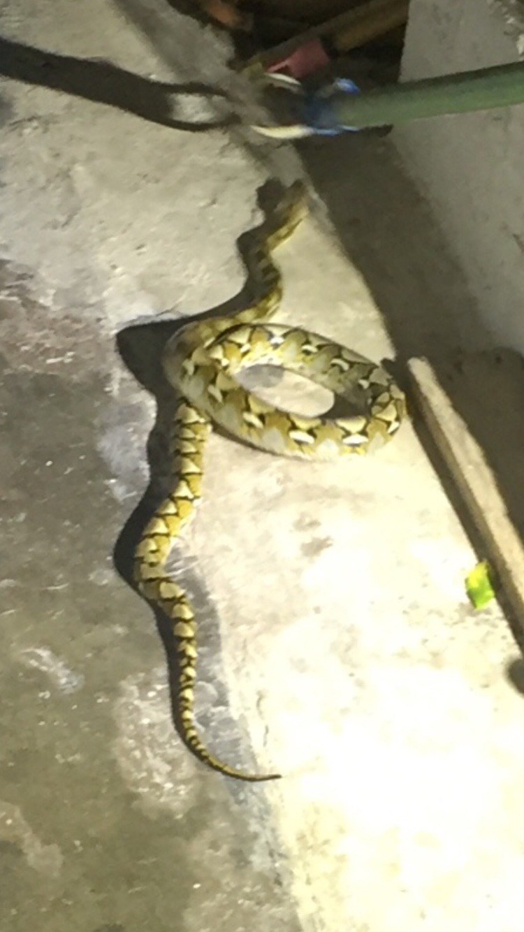 Μπροστά σε ένα αναπάντεχο θέαμα βρέθηκαν κάτοικοι της περιοχής των Καμινίων της Κρήτης όταν αντίκρισαν στην αυλή του σπιτιού τους ένα φίδι μήκους περίπου δύο μέτρων, σύμφωνα με το cretalive.gr.