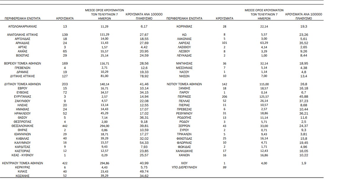 Αναλυτικά τα κρούσματα στις περιφερειακές ενότητες που ανήκουν στην Αττική: