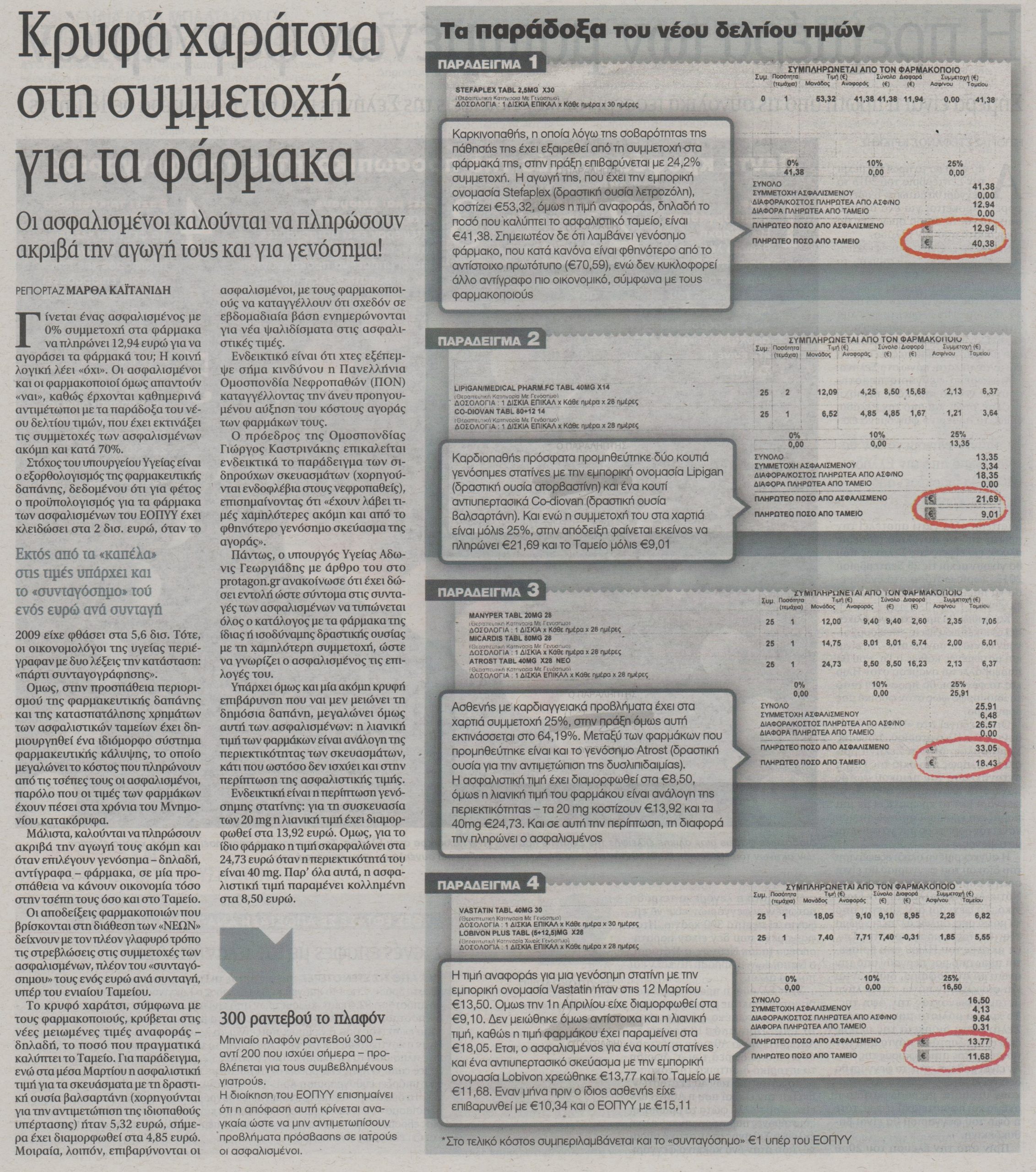 Κρυφά χαράτσια στη συμμετοχή για τα φάρμακα