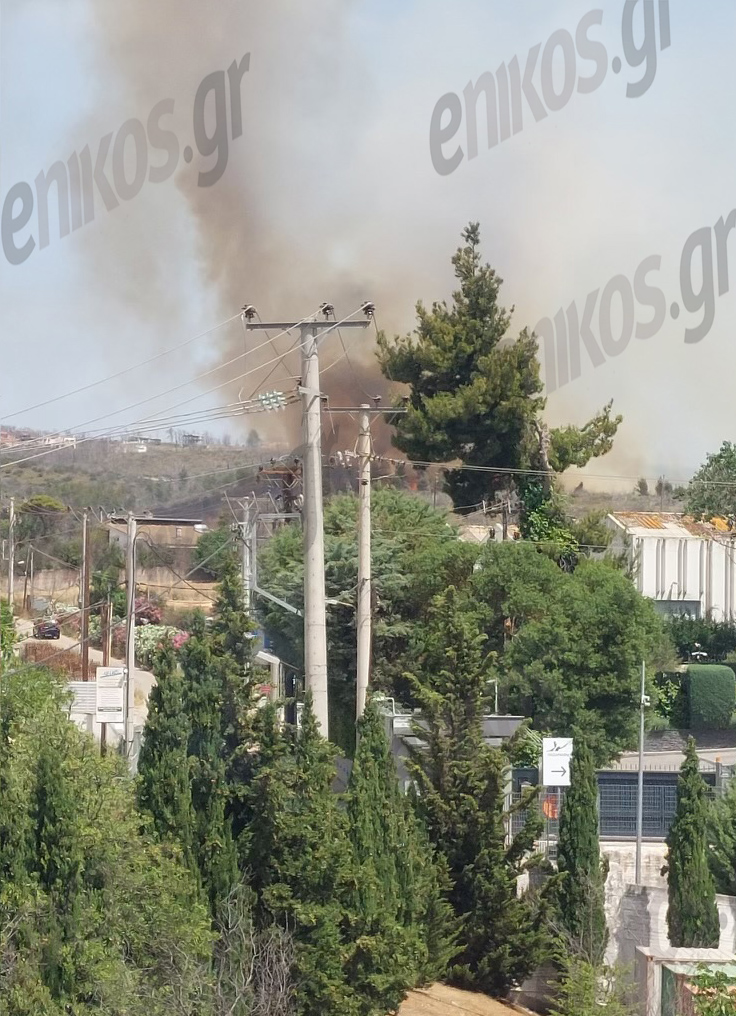 Όπως φαίνεται στις φωτογραφίες που έστειλε αναγνώστης στο enikos.gr, πυκνοί καπνοί έχουν καλύψει την περιοχή, ενώ η φωτιά καίει σε λόφο, πάνω από τον οικισμό.