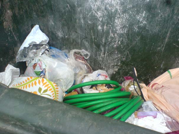 Μια κάτοικος της περιοχής, που πήγε να πετάξει τα σκουπίδια της, βρήκε το ζώο που βλέπετε στη φωτογραφία, κάτω από τις σακούλες των απορριμμάτων μέσα στον κλειστό κάδο.