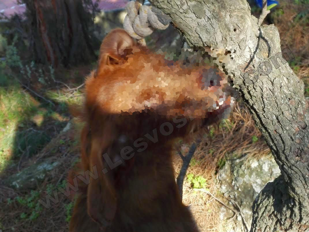 Άγνωστοι κρέμασαν με σκοινί σε δέντρο ένα σκυλί και το εγκατέλειψαν με αποτέλεσμα το ζώο να βρει τραγικό θάνατο.