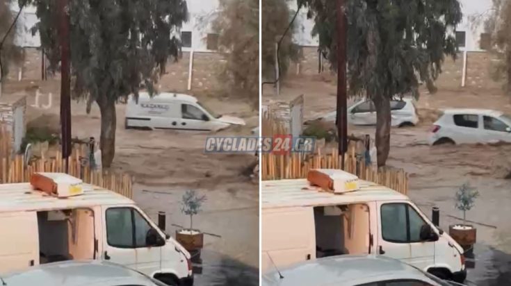Όπως μεταδίδει το cyclades24, στην Πάρο και συγκεκριμένα στη Νάουσα, η ένταση της βροχής είχε ως αποτέλεσμα τη δημιουργία ορμητικών χειμάρρων που παρέσυραν οχήματα και προκάλεσαν εκτεταμένες υλικές ζημιές.