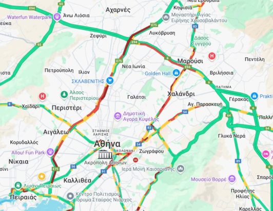 Παράλληλα, καθυστερήσεις 15- 20 λεπτών υπάρχουν στο ρεύμα προς Αεροδρόμιο, από τον κόμβο της Μεταμόρφωσης μέχρι και τον κόμβο Πεντέλης.