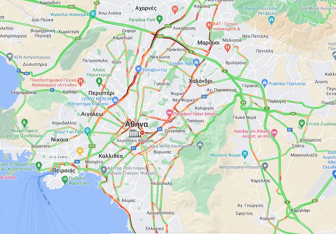 Συγκεκριμένα, τα σημαντικότερα προβλήματα καταγράφονται αυτή την ώρα και στα δύο ρεύματα στην Αθηνών-Λαμίας, στην άνοδο της Λ. Κηφισού, στην Αλεξάνδρας, στα δύο ρεύματα της Λ. Κηφισίας, στην κάθοδο της Βασ. Σοφίας, στη Βασ. Κωνσταντίνου αλλά και στη Λ. Ποσειδώνος και συγκεκριμένα έως το Καραϊσκάκη στο ρεύμα προς Πειραιά.