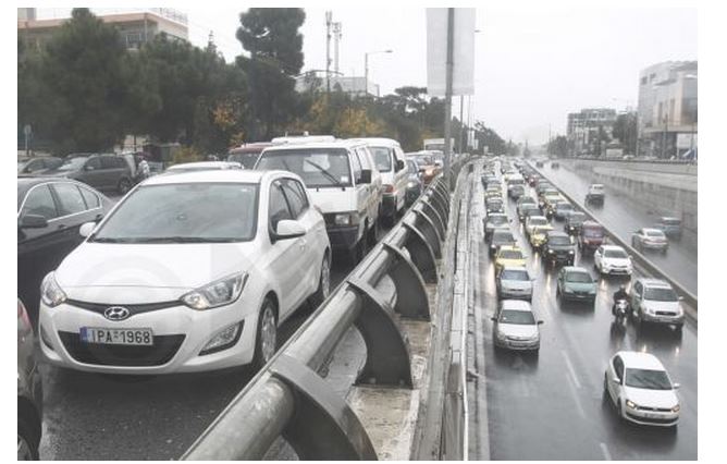 Ουρές εκατοντάδων μέτρων έχουν σχηματίσει τα αυτοκίνητα στις περισσότερες περιοχές του λεκανοπεδίου Αττικής εξαιτίας της βροχόπτωσης.