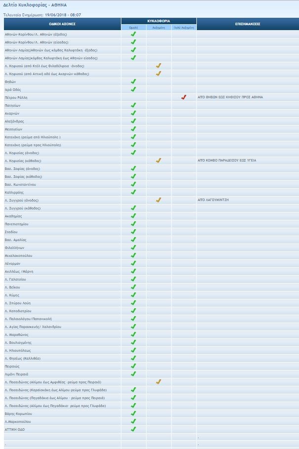 Σύμφωνα με την ενημέρωση από την τροχαία αυξημένη κίνηση παρατηρείται στα εξής σημεία: Λ. Κηφισού (από ΚΤΕΛ έως Φιλαδέλφεια – άνοδος), Λ. Κηφισού (από Αττική οδό έως Αχαρνών-κάθοδος), Πέτρου Ράλλη (από Θηβών έως Κηφισού – προς Αθήνα), Λ. Κηφισίας (κάθοδος), Λ. Συγγρού (άνοδος) και Λ. Ποσειδώνος (Αλίμου έως Αμφιθέας – ρεύμα προς Πειραιά).