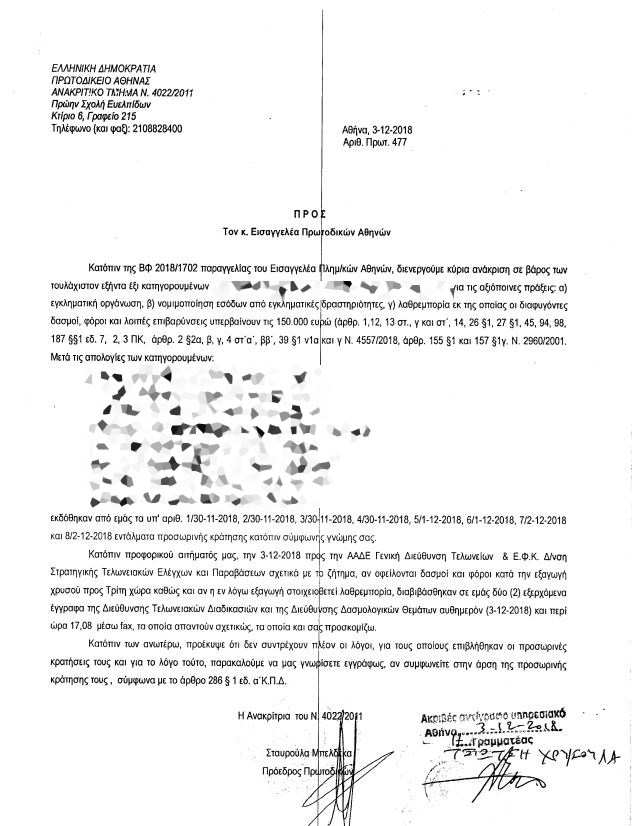 Κύκλωμα χρυσού: Το έγγραφο της ανακρίτριας που λέει πως «δεν υπάρχει λόγος κράτησης» για τους οκτώ