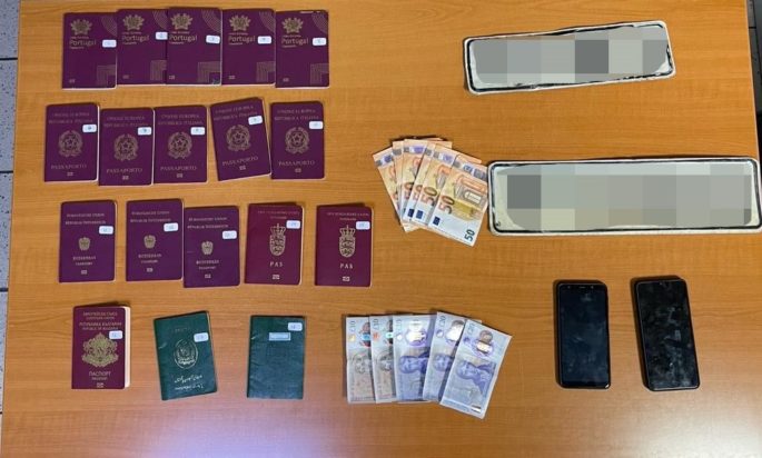 Συνολικά, στις έρευνες που πραγματοποιήθηκαν, βρέθηκαν και κατασχέθηκαν 18 διαβατήρια διαφόρων εθνικοτήτων, η γνησιότητα των οποίων θα ελεγχθεί από τη Διεύθυνση Εγκληματολογικών Ερευνών, κινητό τηλέφωνο, 80 λίρες Ηνωμένου Βασιλείου και 365 ευρώ.