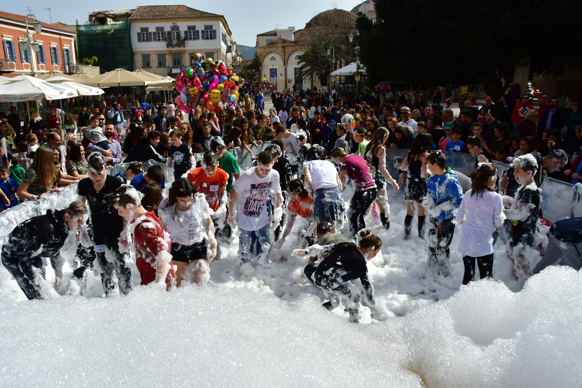 Με μεγάλη συμμετοχή αναβίωσε σήμερα το παραδοσιακό παιχνίδι «Το κυνήγι του χαμένου θησαυρού» στην Πλατεία Συντάγματος στο ιστορικό κέντρο της πόλης του Ναυπλίου.Ένα μέρος του παιχνιδιού θέλει τα παιδιά να βουτάνε με το πρόσωπο μέσα σε γιαούρτι και αφρό για να βρουν ένα γρίφο του κρυμμένου θησαυρού. Οι εορταστικές εκδηλώσεις διοργανώθηκαν από τον Δήμο Ναυπλιέων και τον ΔΟΠΠΑΤ, στοχεύουν στη διατήρηση της παράδοσης και την αναβίωση των εθίμων, παλαιών και νεότερων.Δείτε τις φωτο: