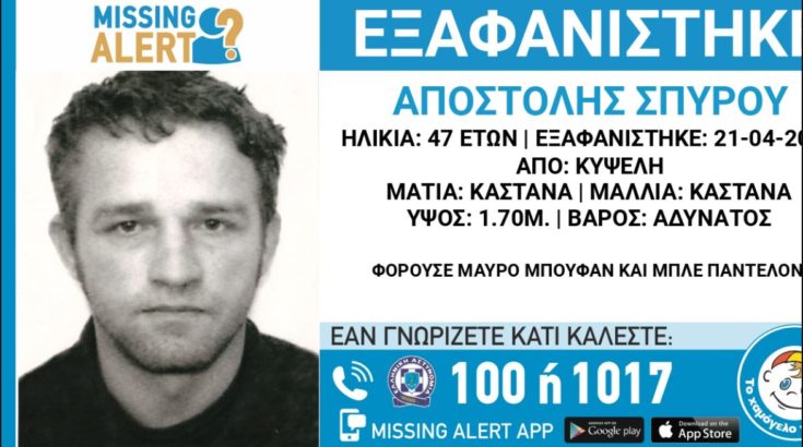 Εξαφανίστηκε από την περιοχή της Κυψέλης το μεσημέρι της 21ης Απριλίου ο 47χρονος Αποστόλης Σπύρου.