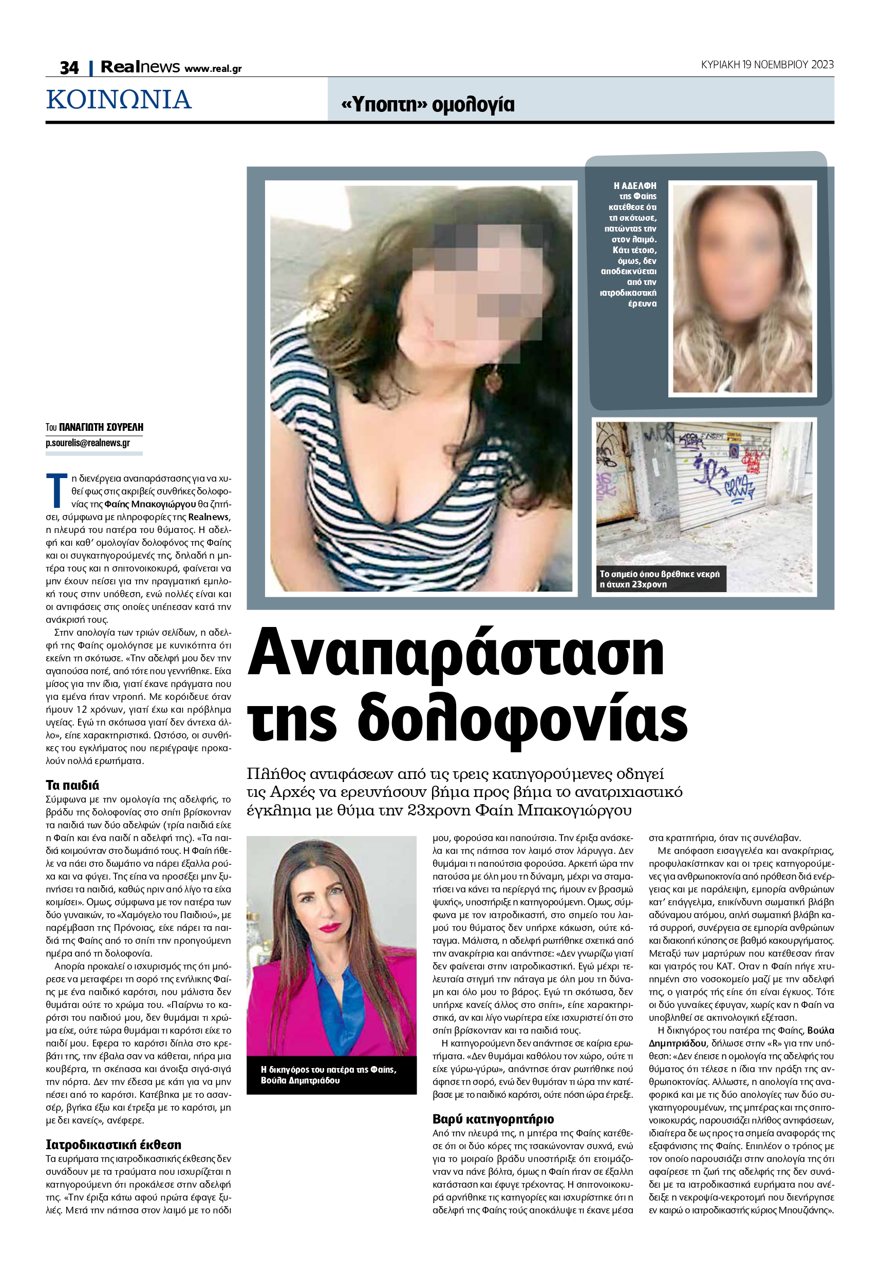 Φαίη Μπακογιώργου: Ομολόγησε την δολοφονία η αδελφή της – «Το έκανα, γιατί την μισούσα»