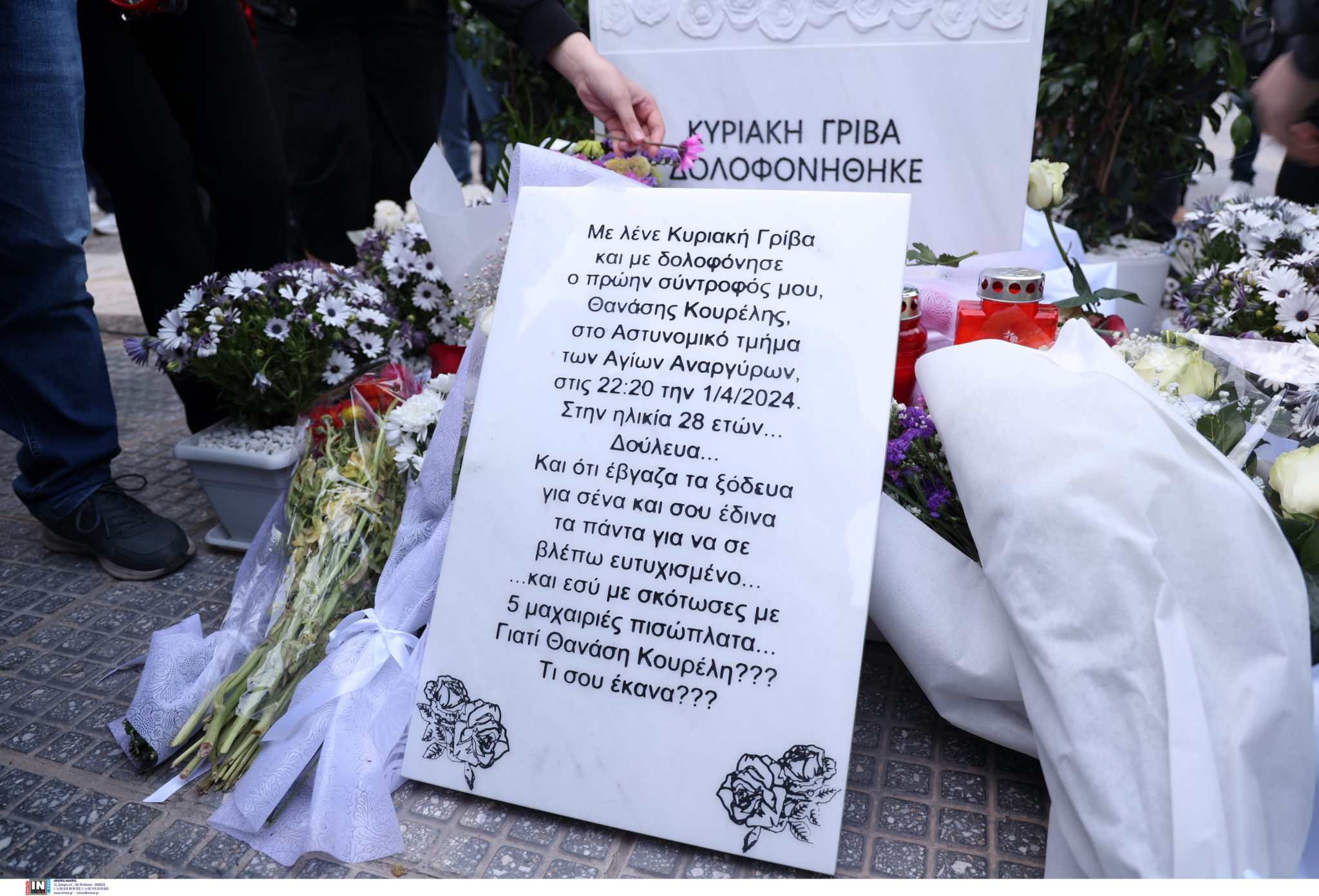 Αφαιρέθηκε η πλακέτα που είχε τοποθετηθεί μπροστά από το μνημείο που είναι αφιερωμένο στην Κυριακή Γρίβα, η οποία δολοφονήθηκε την 1η Απριλίου 2024 έξω από το αστυνομικό τμήμα Αγίων Αναργύρων.