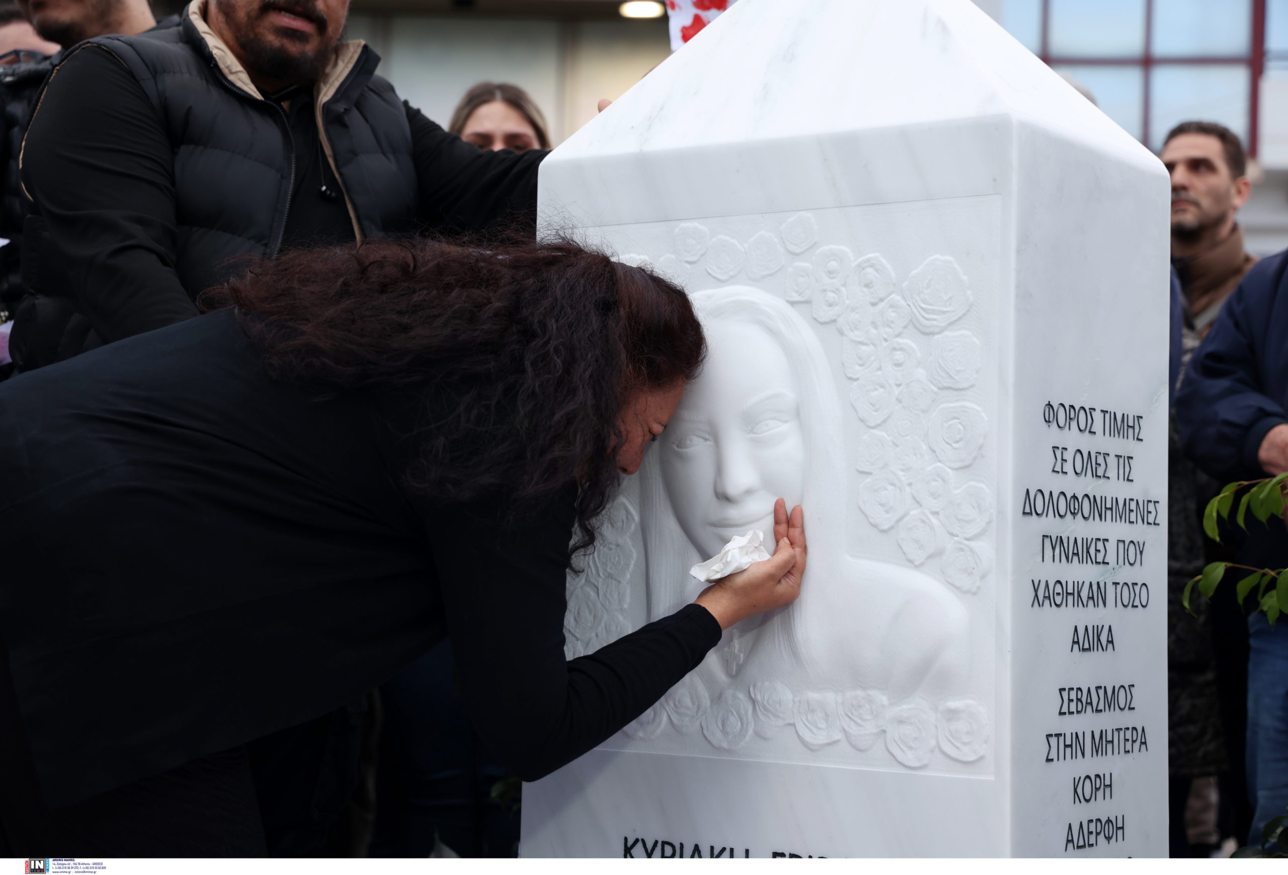 Σε κλίμα βαθιάς συγκίνησης και έντονης συναισθηματικής φόρτισης πραγματοποιήθηκε η τελετή αποκαλυπτηρίων του μνημείου της Κυριακής Γρίβα, η οποία δολοφονήθηκε πριν από έναν χρόνο από τον πρώην σύντροφό της μόλις λίγα μέτρα από το Αστυνομικό Τμήμα των Αγίων Αναργύρων.