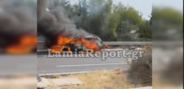 Φωτιά εν κινήσει άρπαξε αυτοκίνητο που κινούνταν στην εθνική οδό Αθηνών – Θεσσαλονίκης το πρωί του Σαββάτου (20/8).
