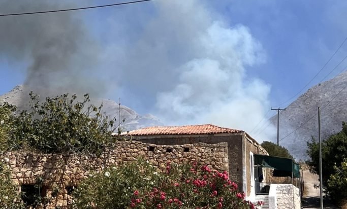 Για την κατάσβεση της πυρκαγιάς έχουν κινητοποιηθεί 35 πυροσβέστες με μία ομάδα πεζοπόρου τμήματος, 12 οχήματα και 2 αεροσκάφη.
