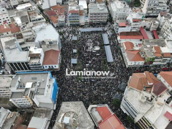 Χιλιάδες πολίτες συγκεντρώθηκαν στο κέντρο της Λαμίας για να διαμαρτυρηθούν για την τραγωδία στα Τέμπη.