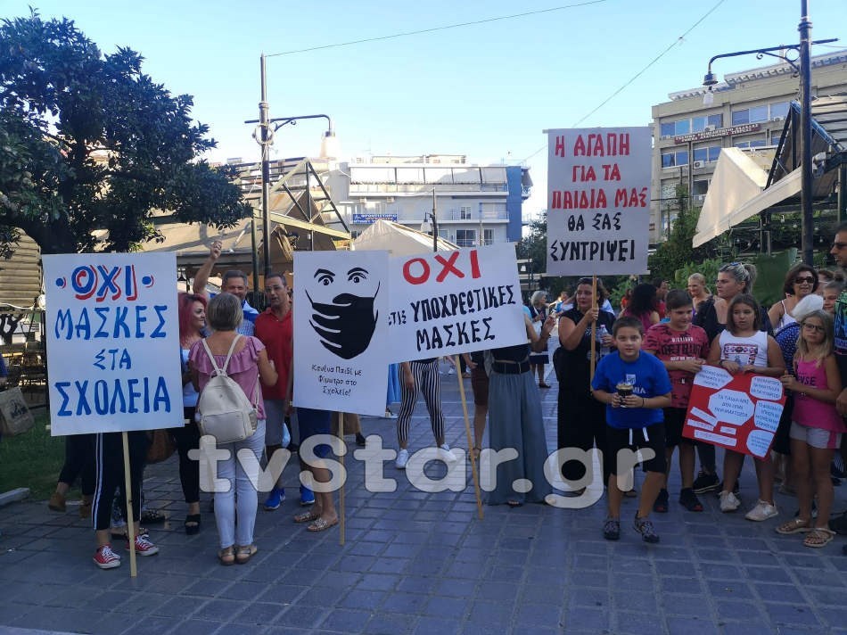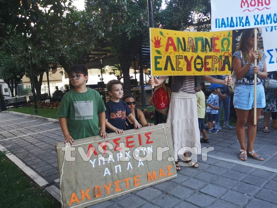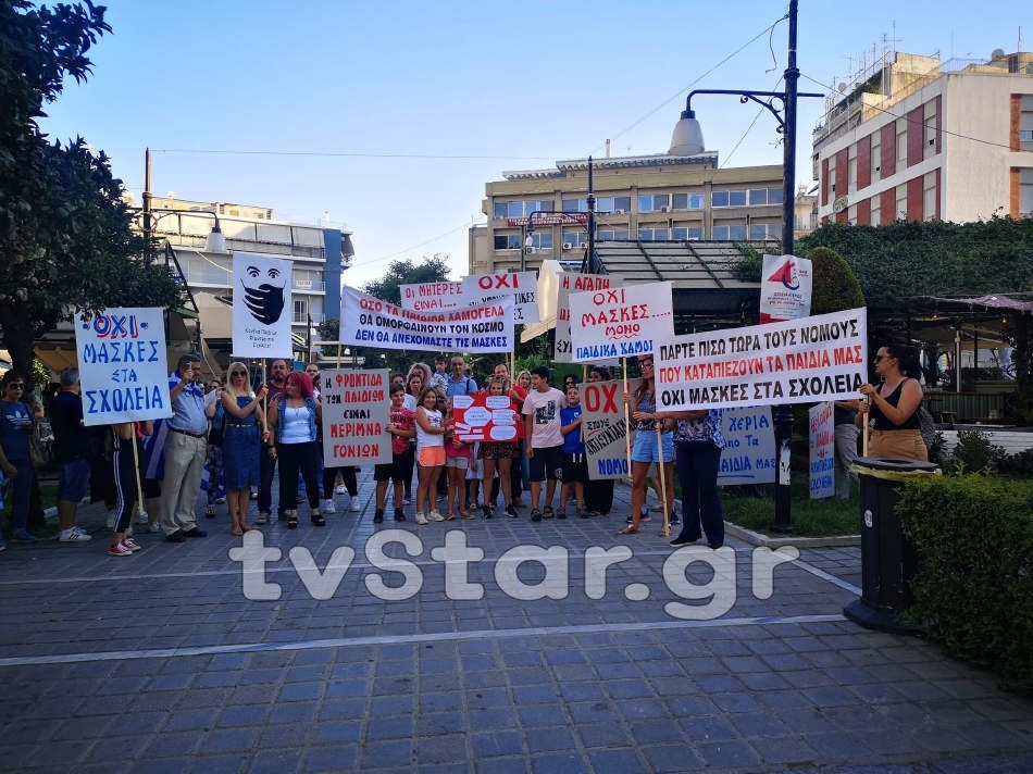Συγκέντρωση πραγματοποιήθηκε και στην πόλη της Λαμίας το απόγευμα της Κυριακής, από γονείς και που τάσσονται κατά της χρήσης μάσκας στα σχολεία.