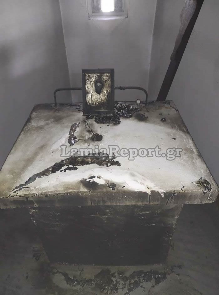Ιερόσυλοι διέρρηξαν και έβαλαν φωτιά στο εκκλησάκι που βρίσκεται μέσα στο Κοιμητήριο του Σταυρού Λαμίας. Το ιερό καταστράφηκε ολοσχερώς, ενώ σύμφωνα με το lamiareport.gr οι δράστες είχαν ρίξει λάδι στις εικόνες και στο δάπεδο για να κάψουν ολόκληρο τον ναό.