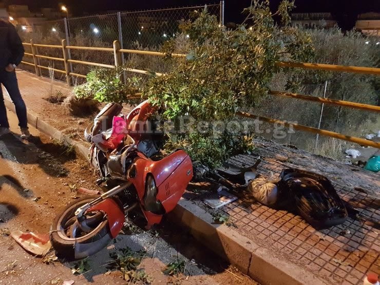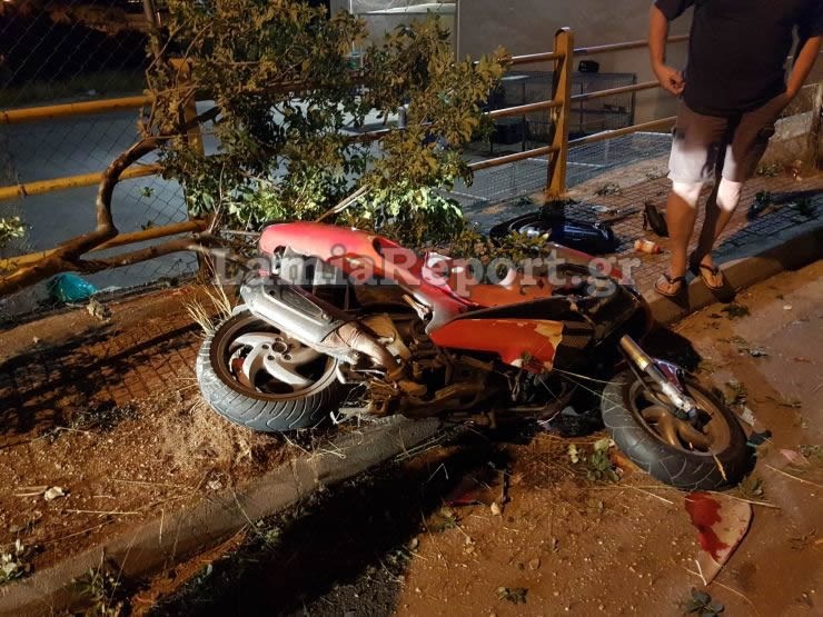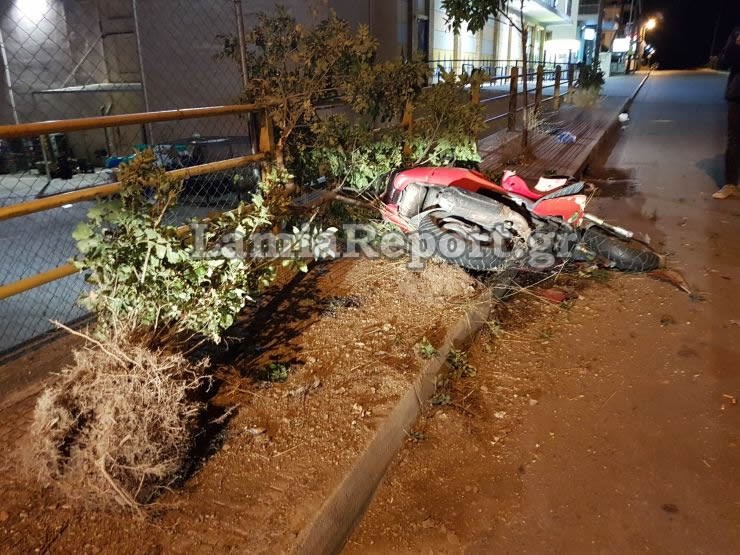 Σοβαρό τροχαίο σημειώθηκε απόψε στη Λαμία. Ο νεαρός ήταν σε μια πλατεία με την παρέα του και ανέβηκε στη μηχανή του για να πάει προς την περιοχή Καλύβια. Κατά τη διαδρομή έχασε τον έλεγχο της μηχανής, η οποία πέρασε στο αντίθετο ρεύμα και καρφώθηκε πάνω σε ένα μικρό δέντρο, το οποίο κυριολεκτικά ξερίζωσε.