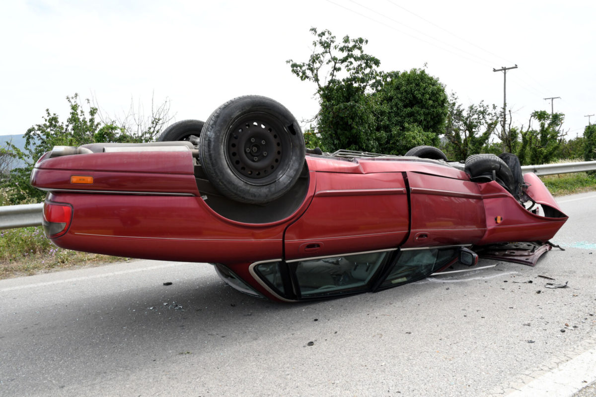Αυτοκίνητο κινούμενο με κατεύθυνση από Λάρισα προς Αγιόκαμπο, στο ύψος της πρώτης εισόδου για την Αγιά, εξετράπη της πορείας του, χτύπησε σε κολόνα και βρέθηκε ανάποδα στο οδόστρωμα.