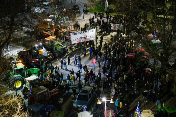 Οι αγρότες θα διανυκτερεύσουν με τα τρακτέρ τους στην Κεντρική πλατεία μέχρι αύριο, Σάββατο 10 Φεβρουαρίου, στις 3 το μεσημέρι.