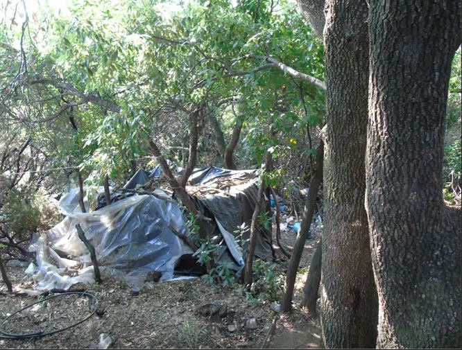Στον χώρο εντοπίστηκαν πρόχειρο παράπηγμα με οικιακά σκεύη και άλλα αντικείμενα, αυτοσχέδια κατασκευή που χρησιμοποιούνταν ως ξηραντήριο των φυτών, καθώς και δίκτυο άρδευσης, αποτελούμενο από λάστιχα που συνδεόταν μεταξύ τους σε όλα τα διαζώματα, -2- αυτοσχέδιες δεξαμενές συλλογής υδάτων, εργαλεία και λιπάσματα.