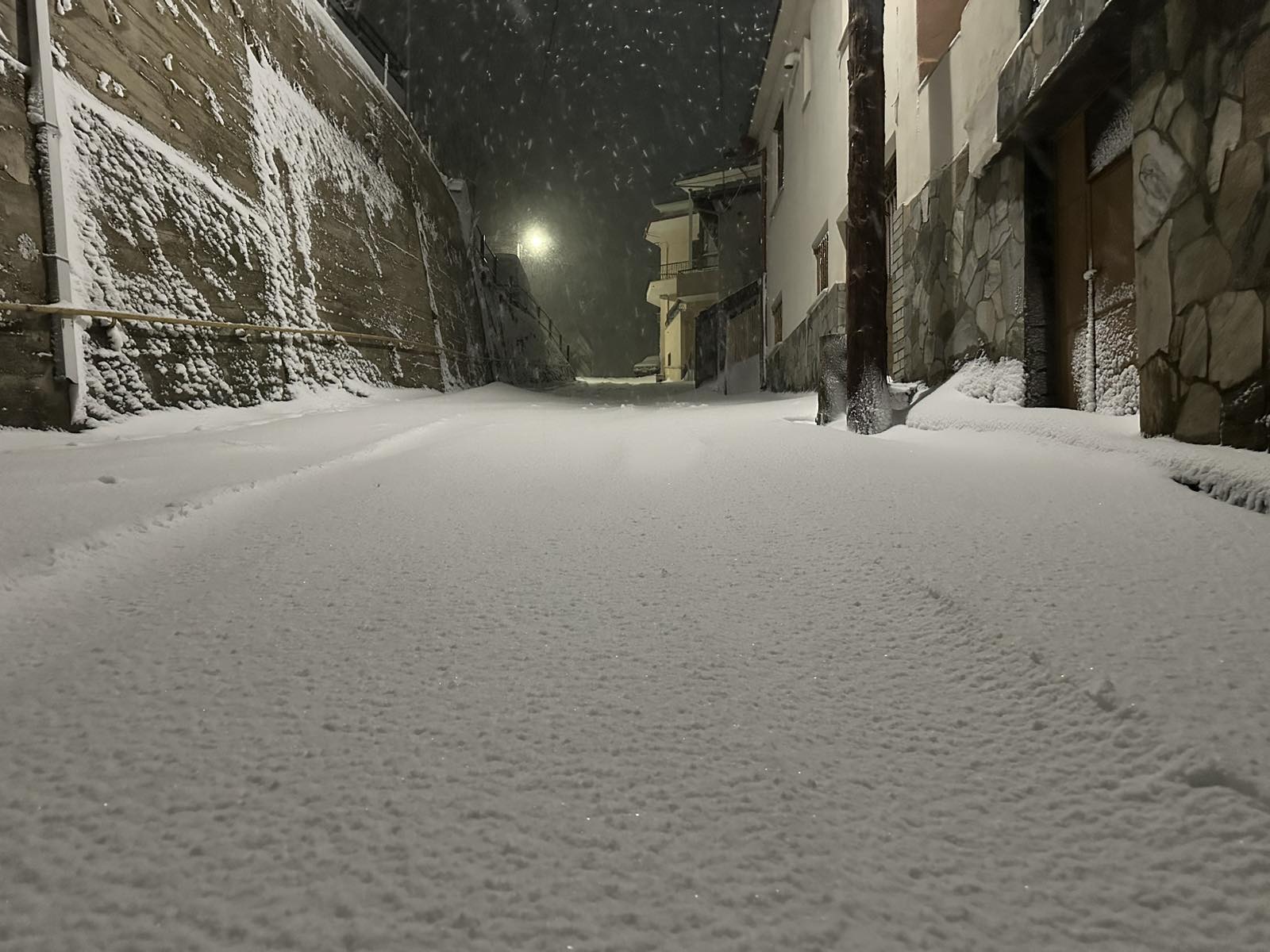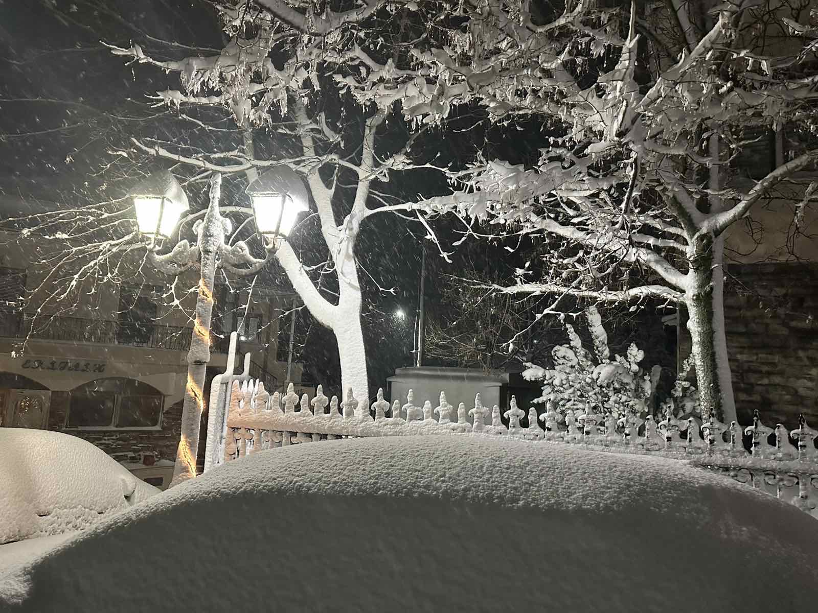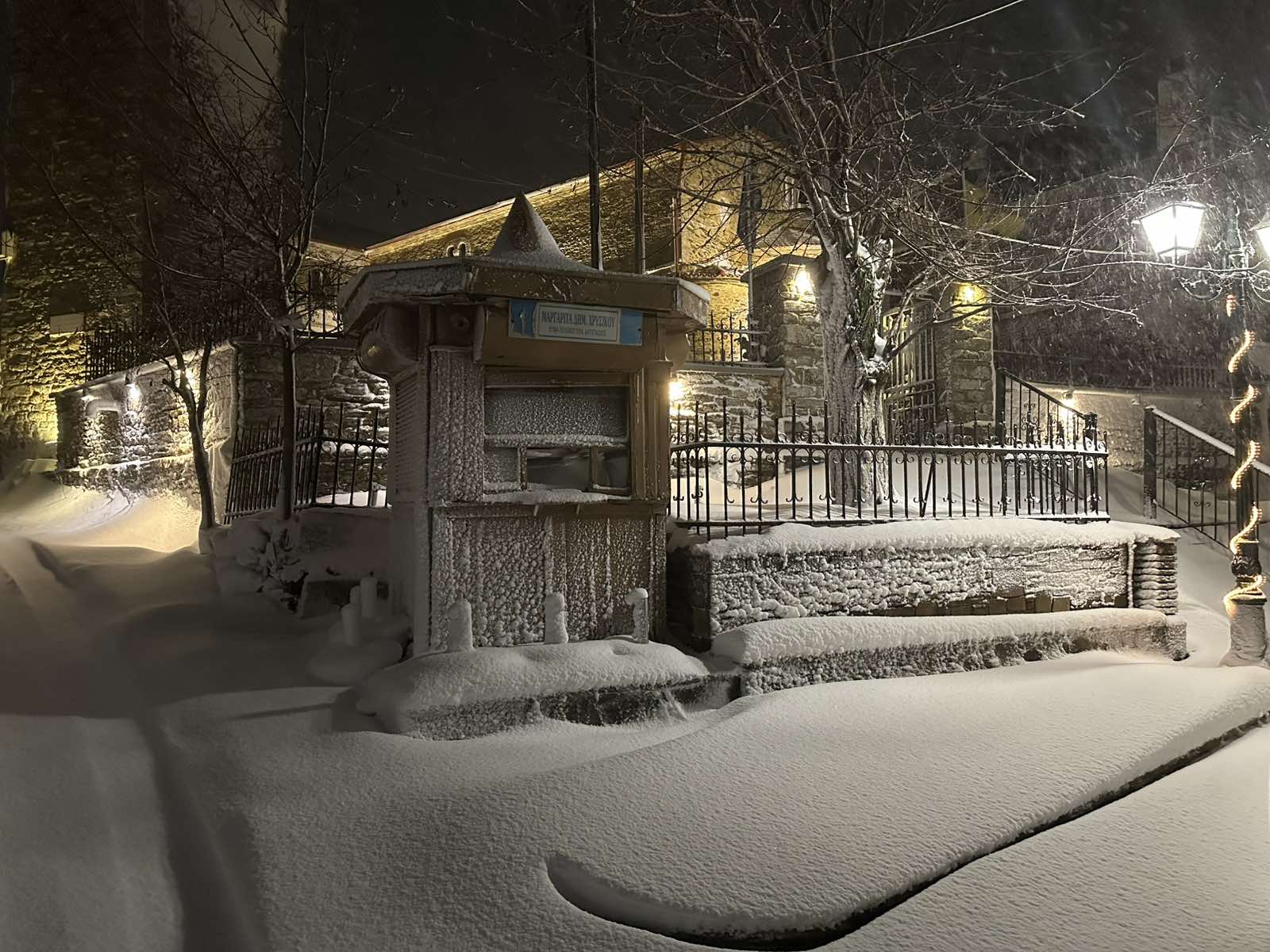 Η θερμοκρασία βρίσκεται στο μηδέν στο χωριό της Ελασσόνας και το σκηνικό είναι ιδανικό για τις εορταστικές αυτές ημέρες των Χριστουγέννων.